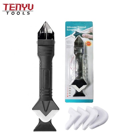 Herramienta de acabado de calafateo de silicona 3 en 1 Herramienta de eliminación de calafateo de lechada de calafateo con raspador de acero inoxidable