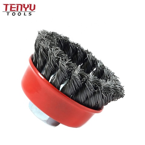 角磨机用3英寸4英寸5英寸M14粗卷曲扭转打结钢丝杯刷